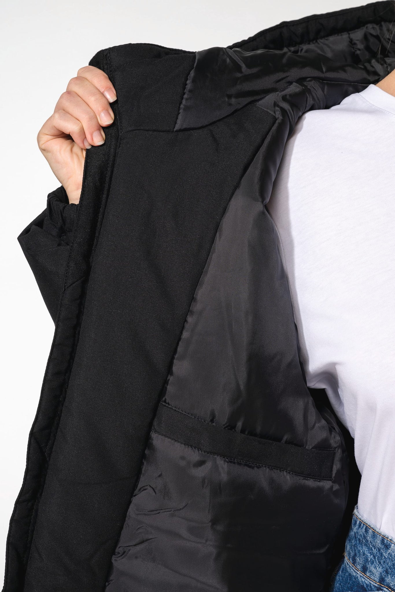 - Elección Eco-Responsable: Este parka moderno está confeccionado con poliéster 100% reciclado post-consumo, haciéndolo respetuoso con el medio ambiente.