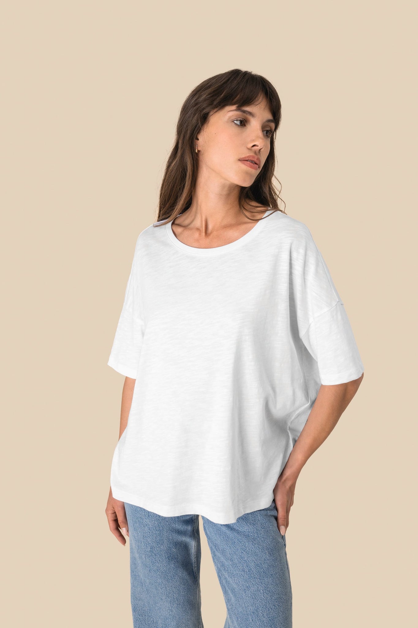Designed for an easy, modern look, this ladies’ oversized slub T-shirt features a relaxed shape with dropped shoulders and a soft, lived-in finish.