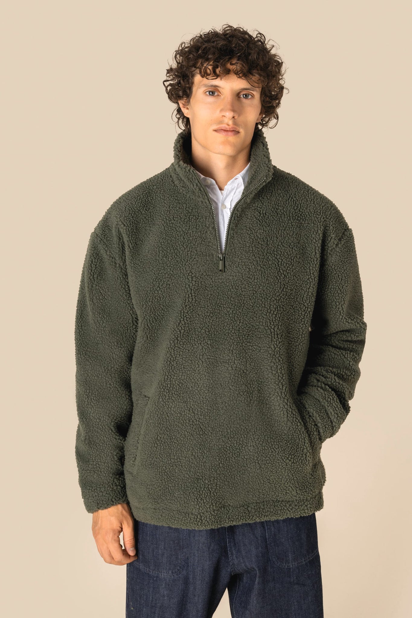 Spasso SP403 - Unisex Sherpa Dropped Shoulders Quarter Zip Sweatshirt