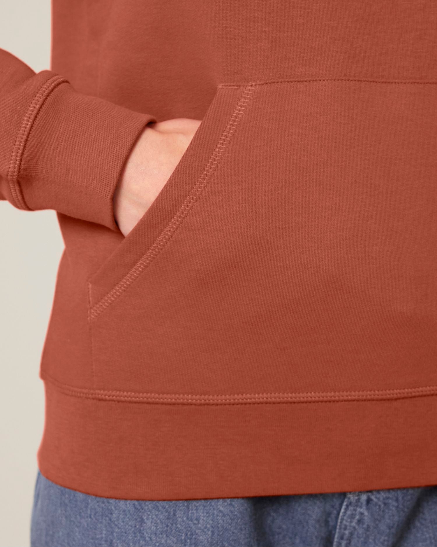- Voorzien van flatlock-topstiksels op alle naden, samen met een kangoeroezak en 1x1 geribde boorden en zoom voor extra duurzaamheid.